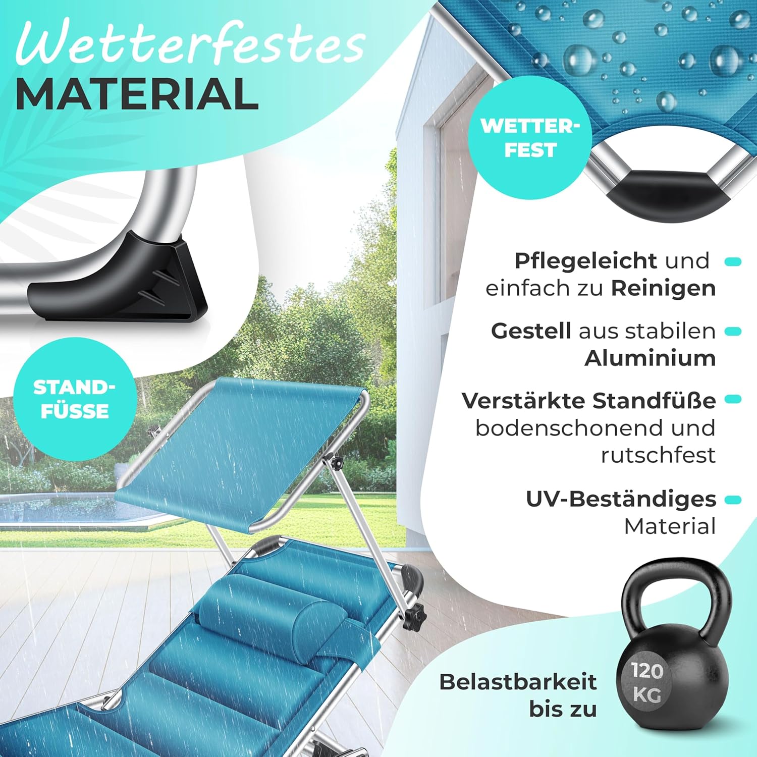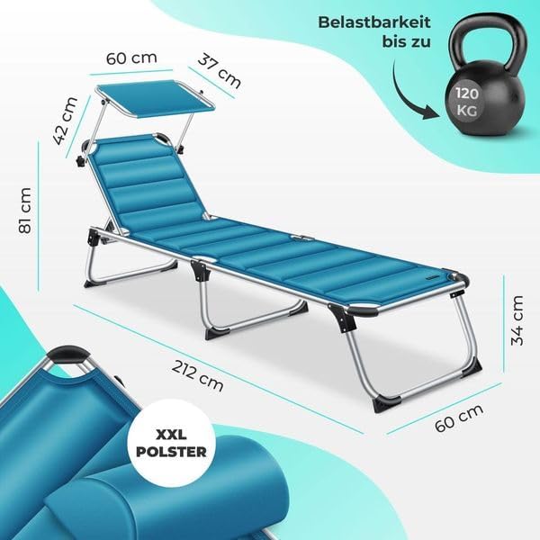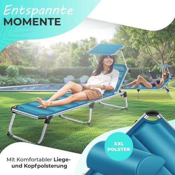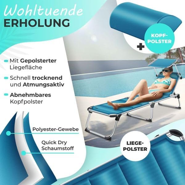 Weerbestendig en onverwoestbaar: Uitgerust met een gewatteerde hoes van weerbestendig en sneldrogend polyester, heb je een hoogwaardige en duurzame aluminium ligstoel gevonden.