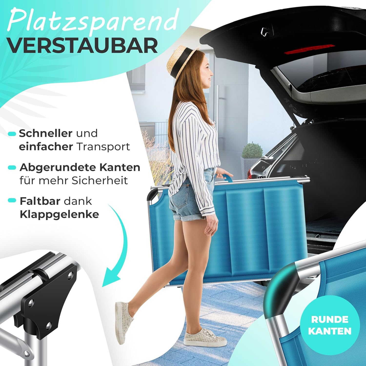 Het gewatteerde ligvlak ondersteunt je bovendien bij langdurig zonnebaden zonder drukpunten of pijn.