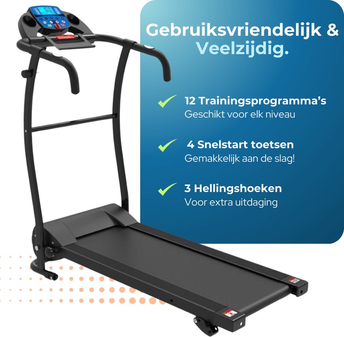 - Geschikt voor wandelen en hardlopen: max. snelheid 10 km/h