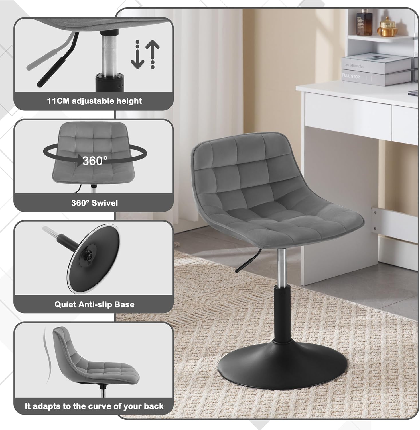 Make-up kruk – kaptafelkruk / kaptafelstoel – multifunctioneel, 360° draaibaar, fluweel met metaal – grijs