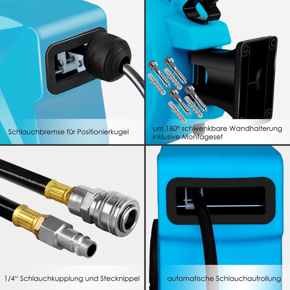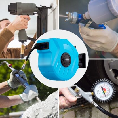 Met de professionele automatische luchtslangoproller zorgt u voor orde.