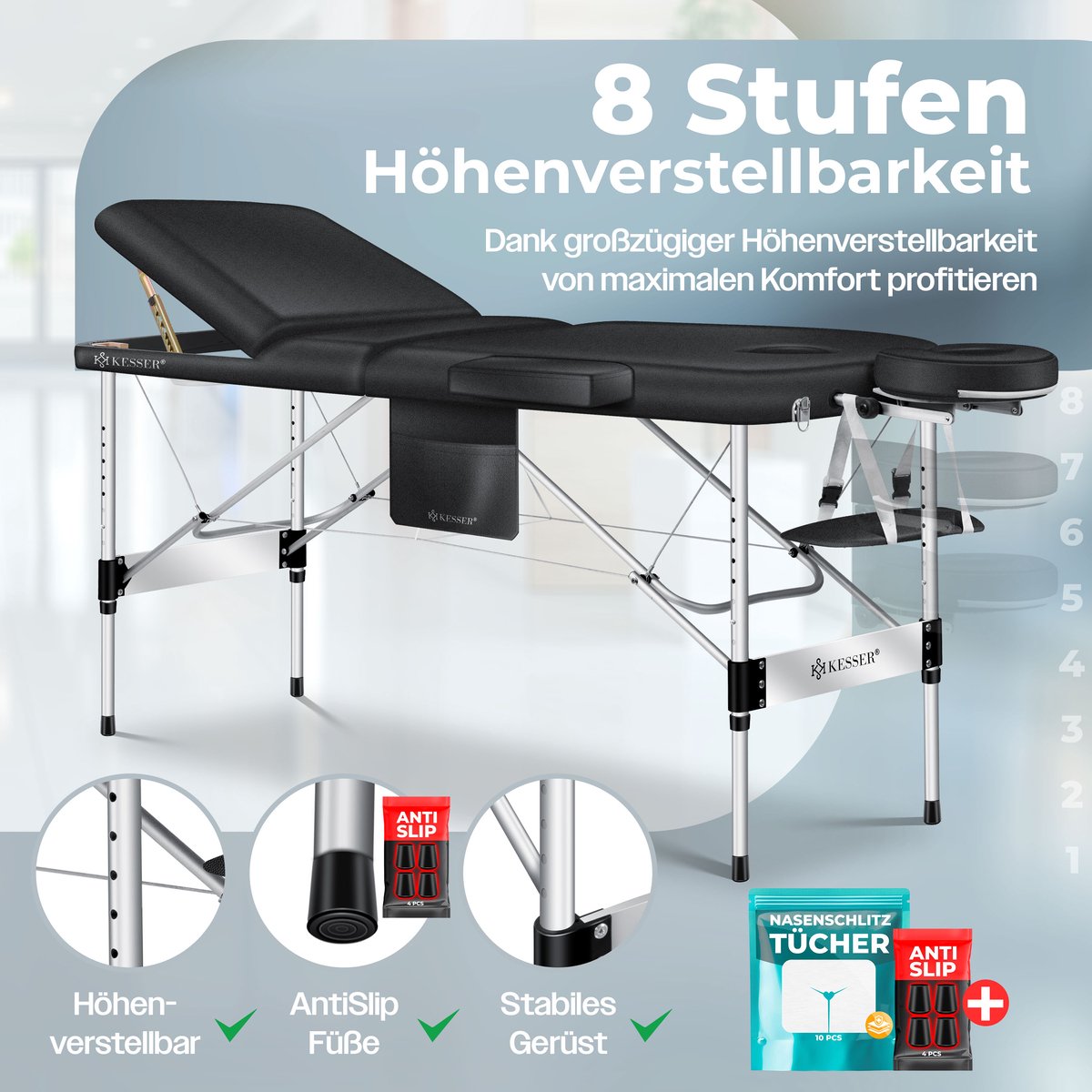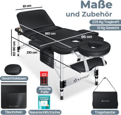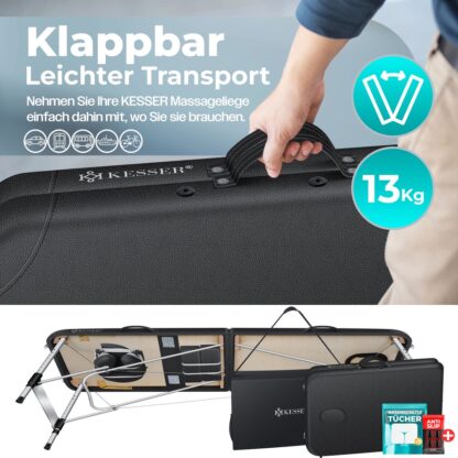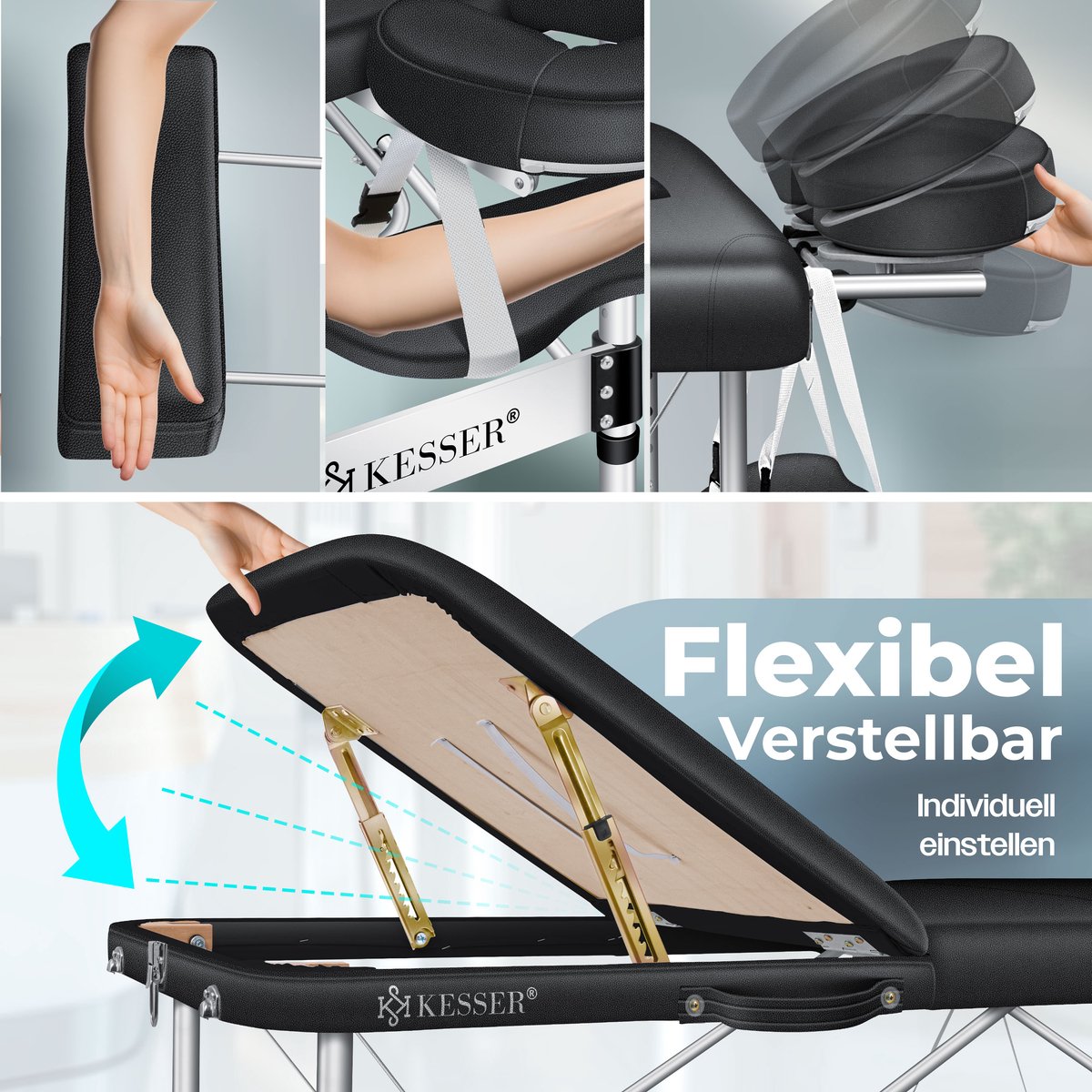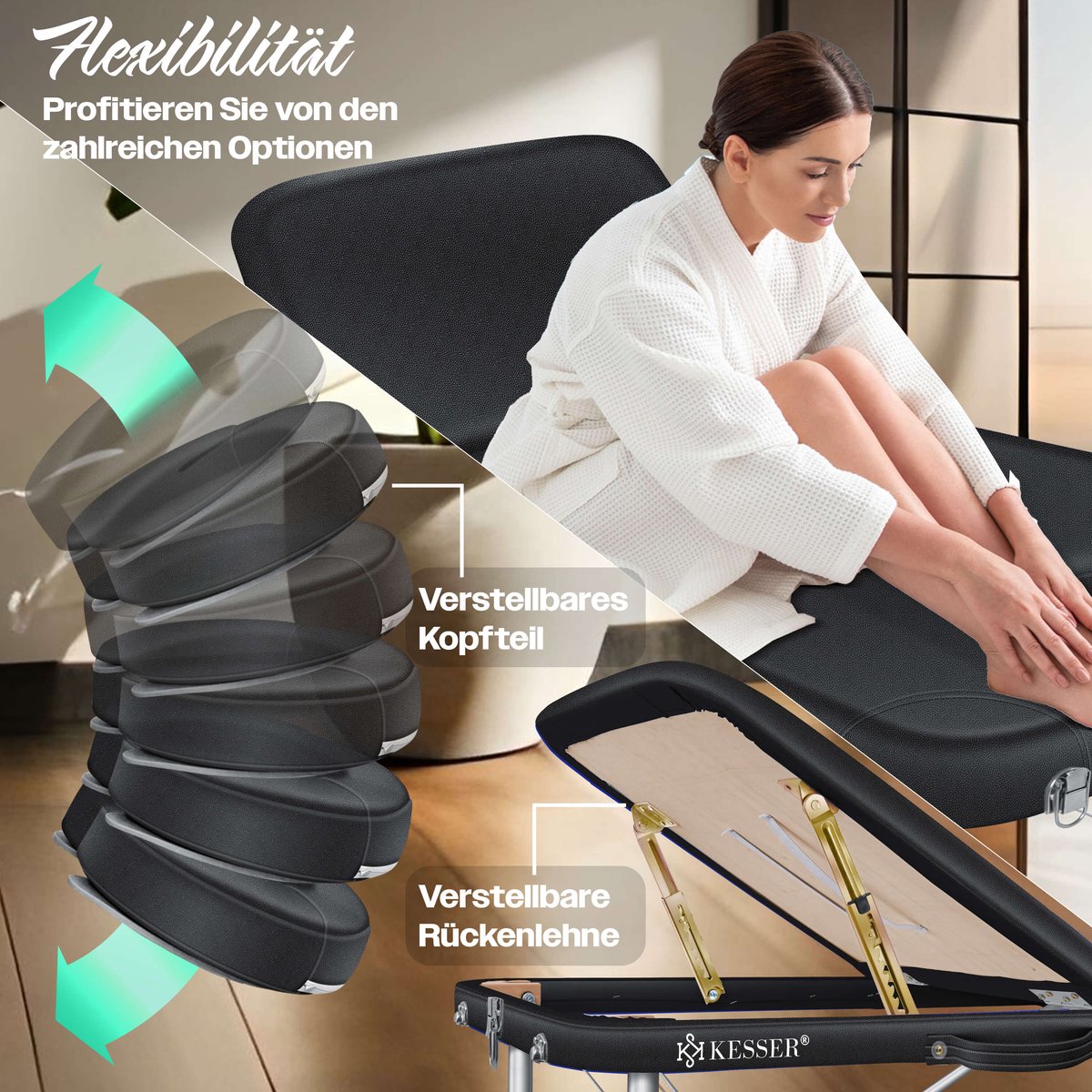 RELAXATIE VAN HOGE KWALITEIT: De mobiele massagetafel van KESSER biedt u een ongeëvenaard niveau van comfort en ontspanning, waardoor uw massage of schoonheidsbehandeling een werkelijk luxueuze ervaring wordt. Of je hem nu gebruikt in je wellnessstudio, salon of thuis, deze tafel is ontworpen om aan de hoogste eisen te voldoen.