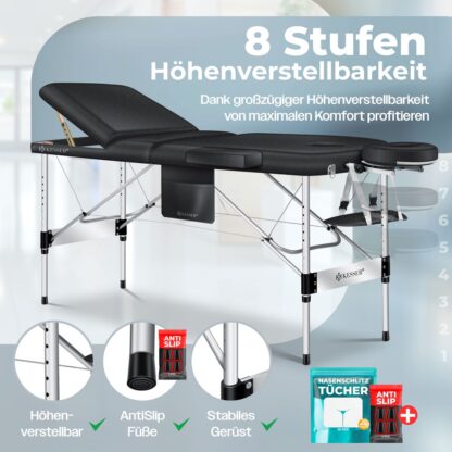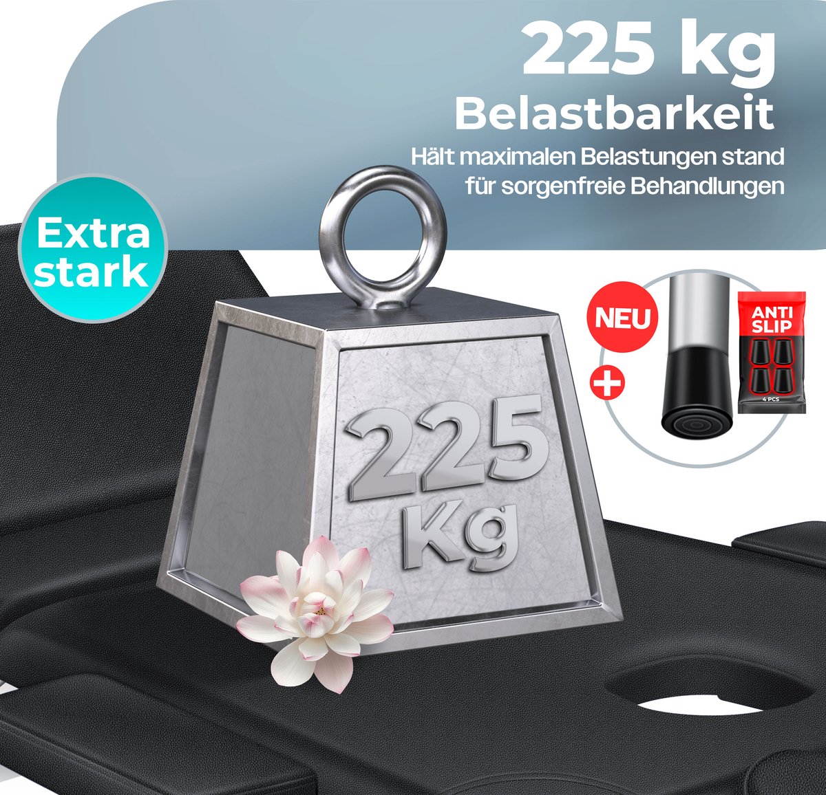 Massagetafel in hoogte verstelbaar, maximaal ligcomfort, mobiliteit en flexibiliteit, veelzijdige verstelmogelijkheden en bestand tegen water en olie voor een luxe en veelzijdige massage- en wellnesservaring.