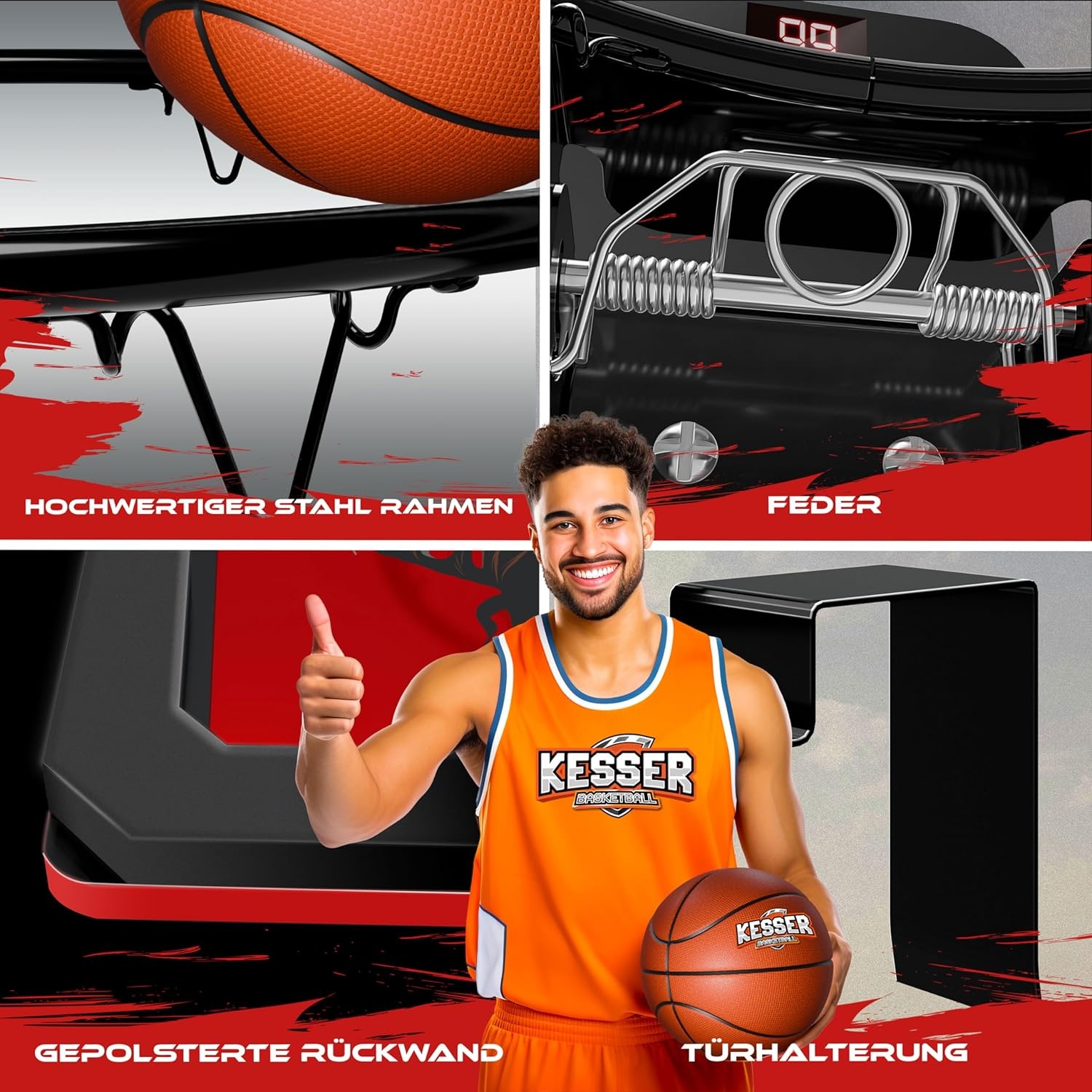 Onze hoogwaardige indoor basketbalring is uiterst duurzaam en veilig. Gemaakt van niet-giftig ABS-kunststof en lichtgewicht metaal, is het ontworpen om breukvast te zijn. Het basketbalbord en de beugels zijn voorzien van een dikkere beschermende schuimvulling dan vergelijkbare basketbalringen. Hierdoor worden de oppervlakken die erop worden gemonteerd maximaal beschermd tegen krassen en wordt tegelijkertijd het geluid verminderd.
