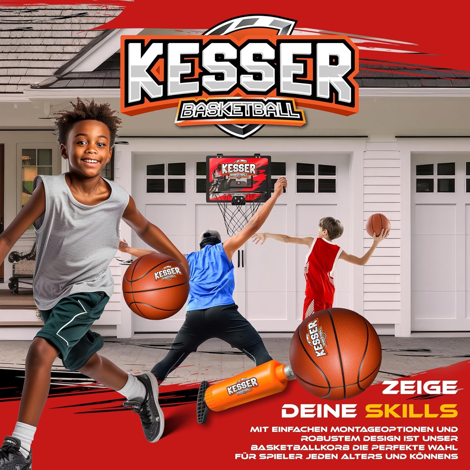 Maar dat is nog niet alles! Elke set bevat drie hoogwaardige rubberen basketballen, gemaakt van niet-giftige en geurloze materialen. Deze ballen zijn duurzaam en geschikt voor actievolle spellen.