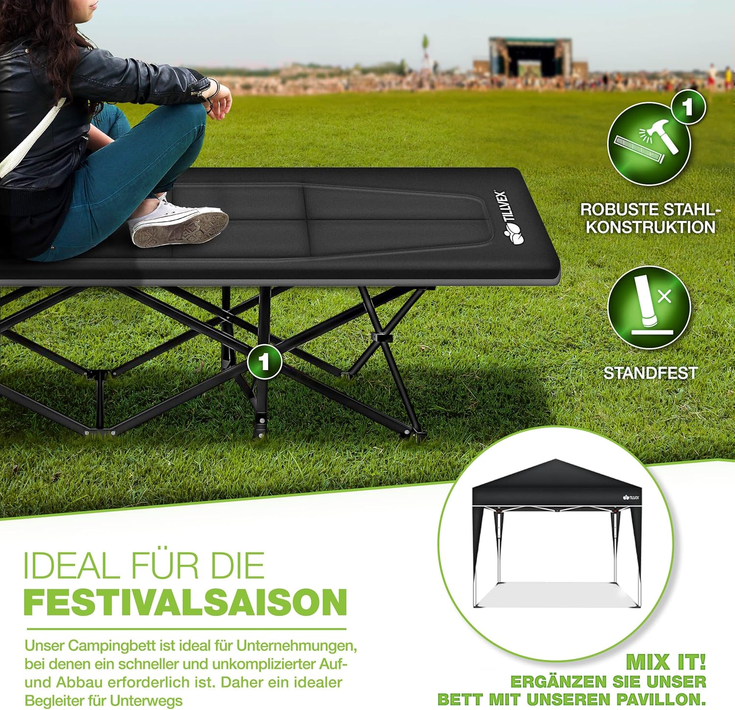 Onze Tilvex kampeerligstoel is voorzien van een superzacht kussen dat in de ligstoel is geïntegreerd. Dit praktische ontwerp bespaart u de moeite van het verwijderen van het kussen en zorgt voor een ononderbroken nachtrust. De geïntegreerde hoofdsteun verhoogt het comfort en zorgt ervoor dat u optimaal kunt genieten van uw rust. Deze doordachte functie maakt het kampeerbed perfect voor in de tuin, op het balkon, op het terras, op reis, op de camping, op het strand of als logeerbed.