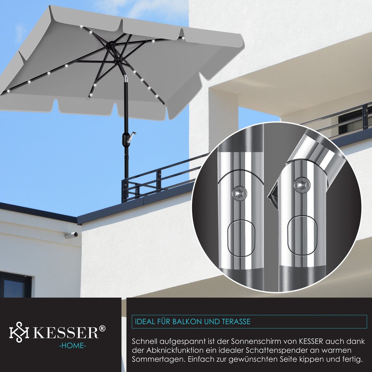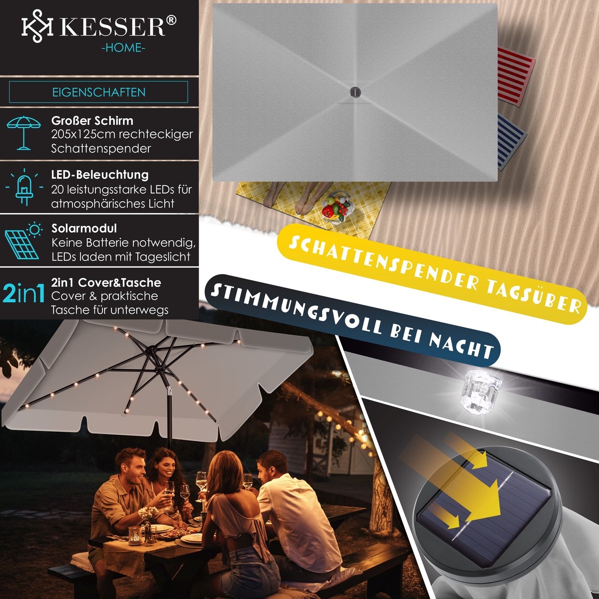 Parasol met 20 LED – 125×200 rechthoekig – solar stokparasol met zwengel – met accessoires – lichtgrijs