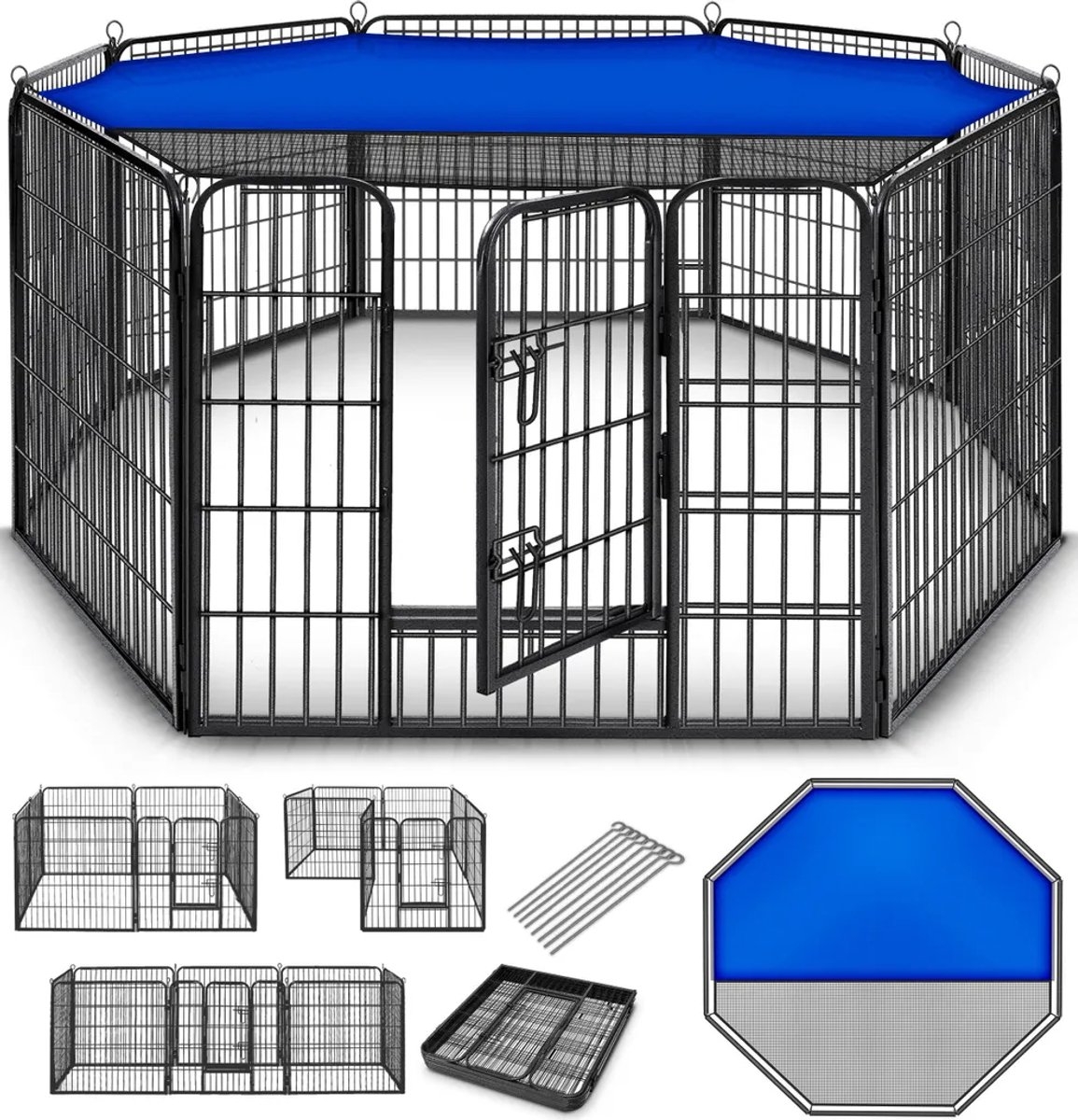 Puppyren 80 cm hoog – zonder dak – met grondankers – Puppyren, 8-delig – opvouwbaar – gereedschapsloze montage – weerbestendig