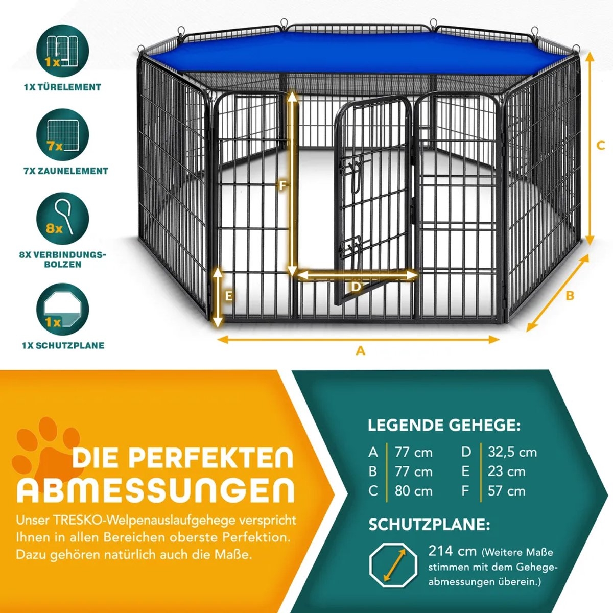 TRESKO Puppyren, Dierenren, Puppyren, Buitenren, Hondenren, Achthoekig