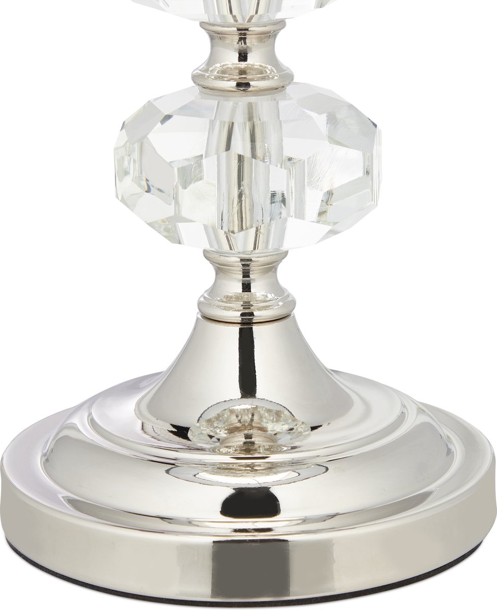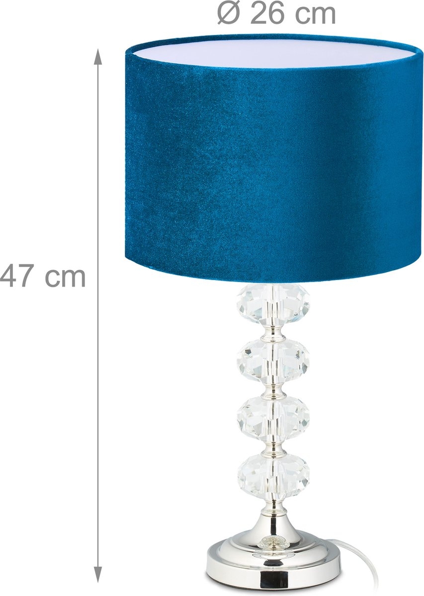 De tafellamp is ideaal om de woonkamer sfeervol te verlichten of als nachtkastlamp voor gezellige verlichting in de slaapkamer. Door de fluwelen glanzende lampenkap ziet de lamp er bijzonder chique uit. Het design wordt afgerond door de doorzichtige kristallen op de zilverkleurig glanzende voet. Als de lamp aan is, ontstaat door de kristallen een prachtig lichtspel maar ook uitgeschakeld is de ronde lamp een echte blikvanger.