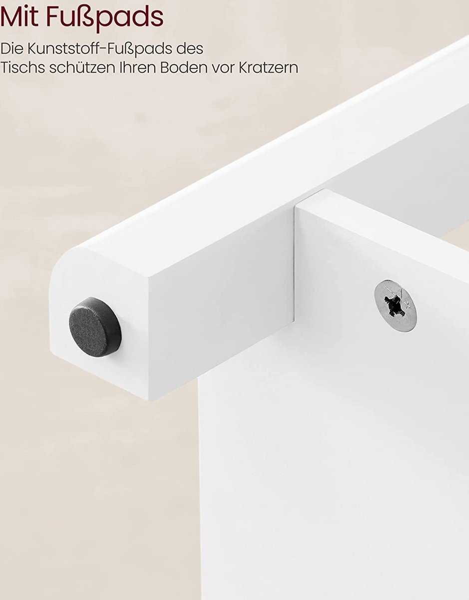 Robuust en stabiel – De behuizing van de salontafel is gemaakt van hoogwaardig spaanplaat en is robuust en duurzaam. De MDF-poten zorgen voor een stabiele stand en zijn bovendien voorzien van kunststof voetjes die je vloer beschermen tegen krassen.
