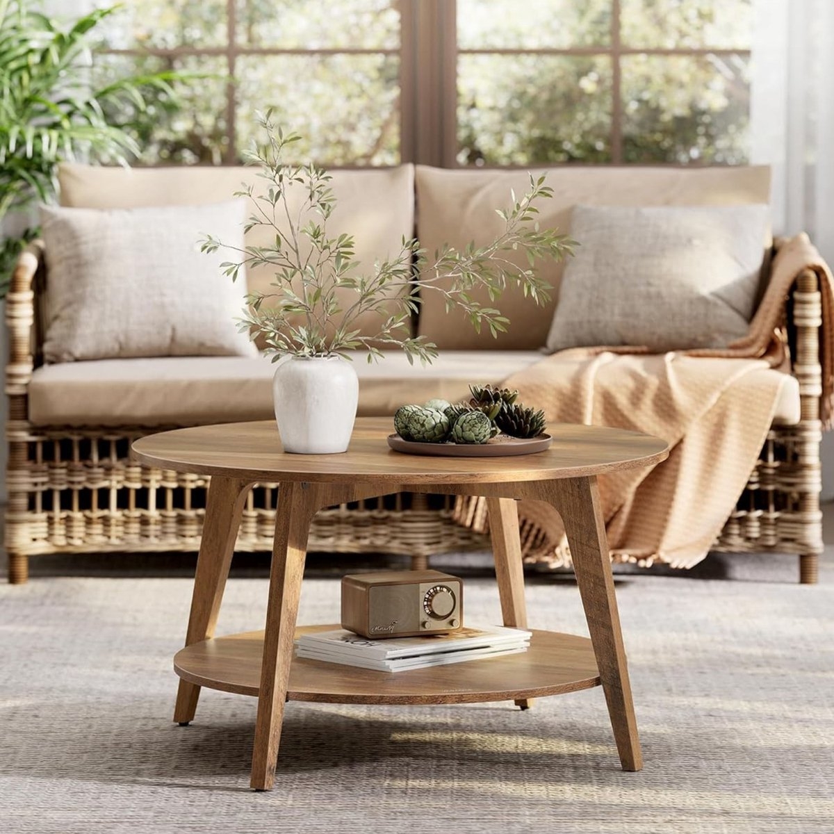 Elegant uiterlijk: met zijn ronde profiel en de strakke lijnen geeft deze salontafel je huis een chique en natuurlijke touch en past gemakkelijk bij verschillende decoratiestijlen