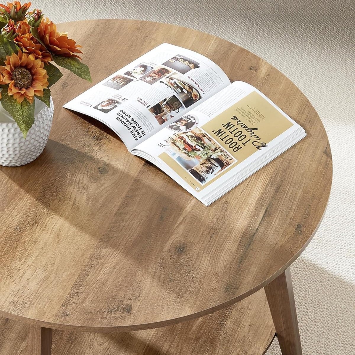 De afmetingen 80 x 45 cm (Ø x H) biedt deze ronde tafel met 2 niveaus voldoende ruimte om je spullen in de woonkamer op te bergen en binnen handbereik te houden