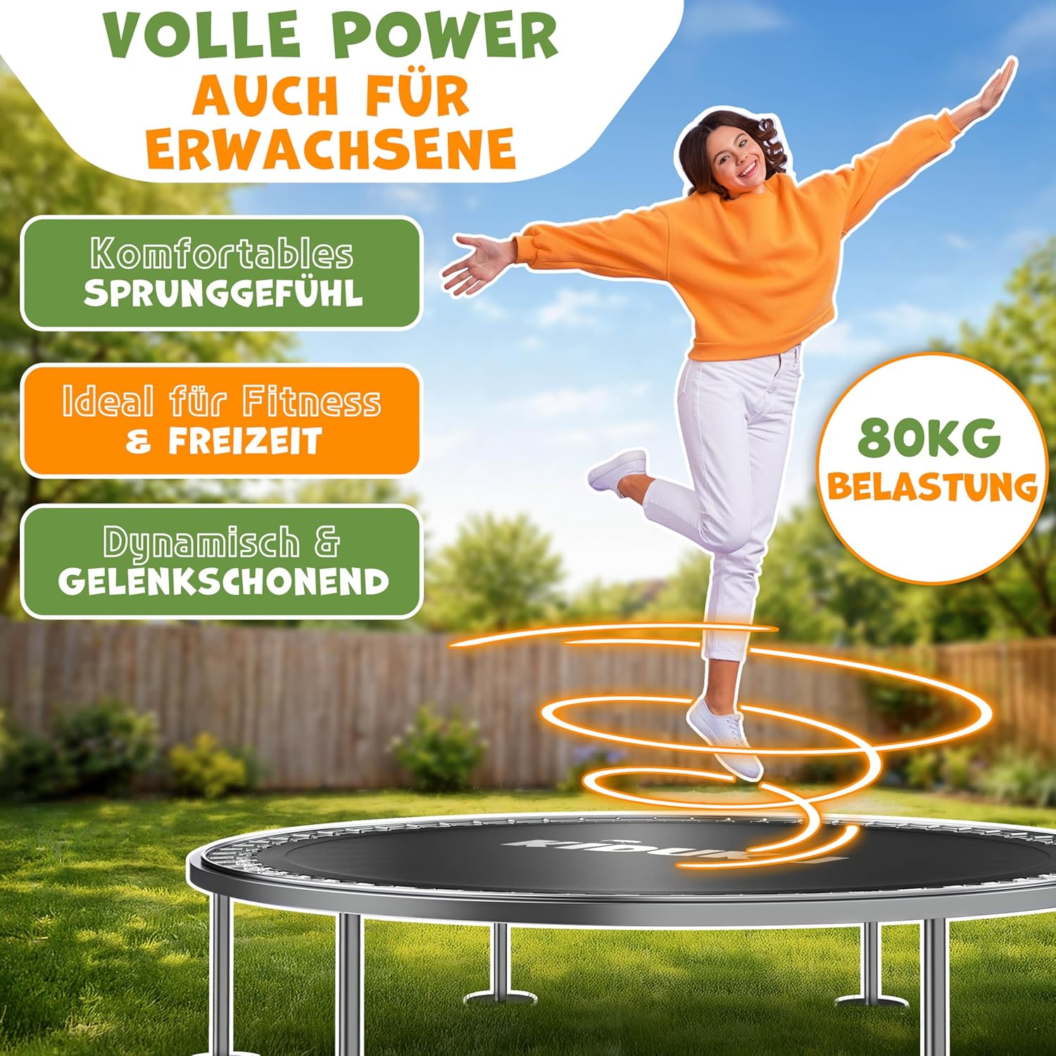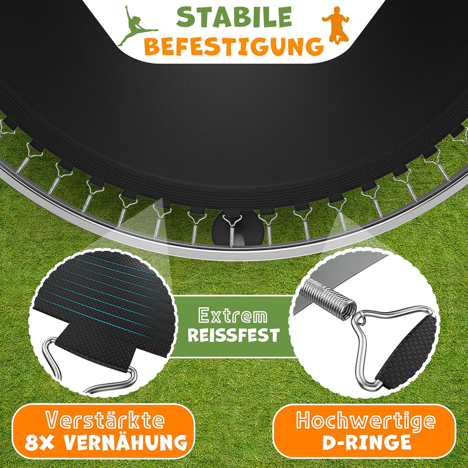 • OPTIMALE DYNAMIEK & COMFORT: ervaar een comfortabel, dynamisch springgevoel dat ideaal is voor dagelijks trampolinespringen in de tuin. Het elastische materiaal zorgt voor een gewrichtsvriendelijke landing en tegelijkertijd maximale kracht bij het springen. De springmat is ontworpen voor een hoge belasting van 80-150 kg, wat hem tot het perfecte reserveonderdeel voor actieve gezinnen maakt.