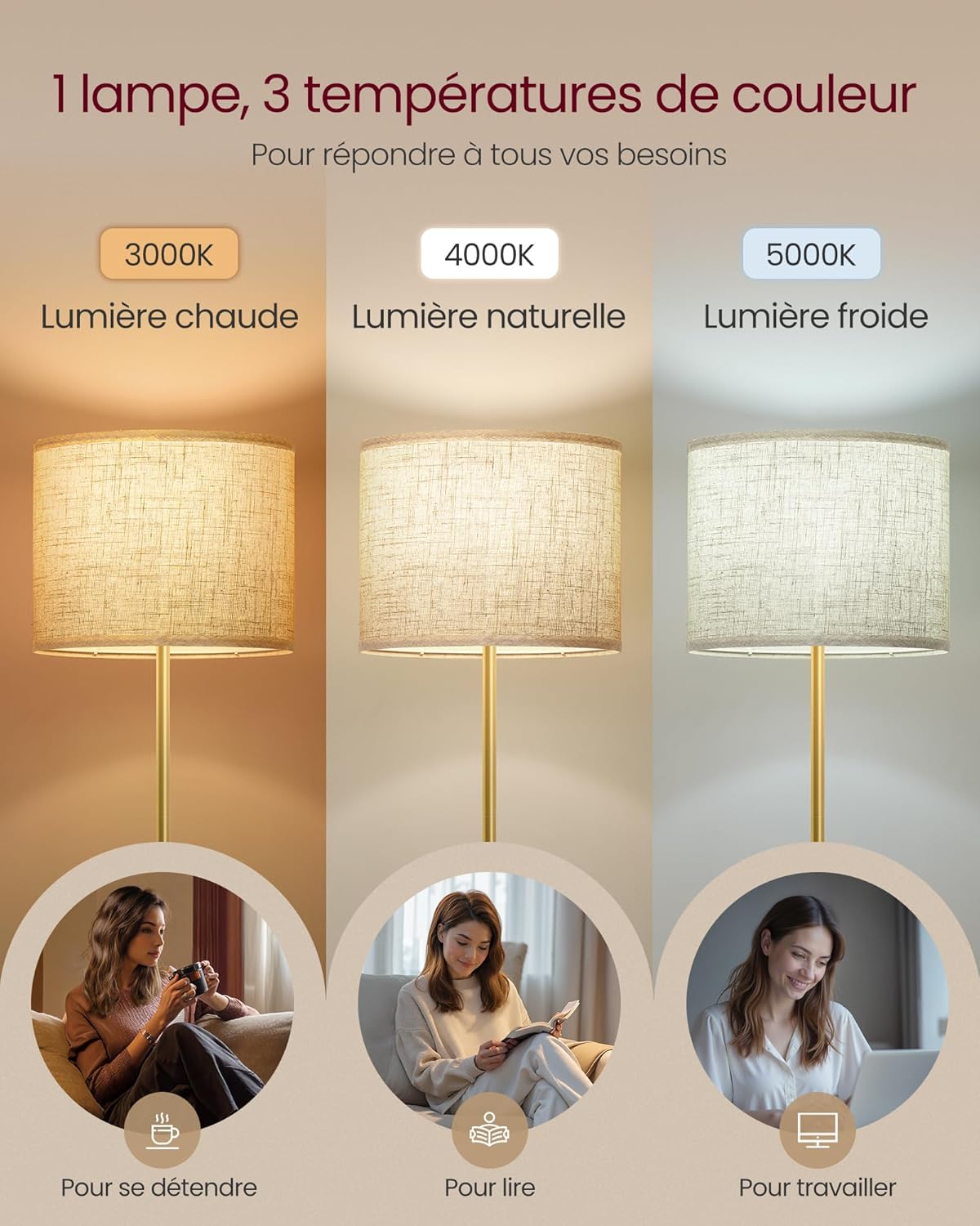 Inclusief lamp en E27-fitting: Een E27-fitting en een ledlamp (9 watt, 820 lm) zijn inbegrepen. Dankzij de 3 kleurtemperaturen (warm, natuurlijk en koud licht) past deze lamp zich aan verschillende omgevingen aan
