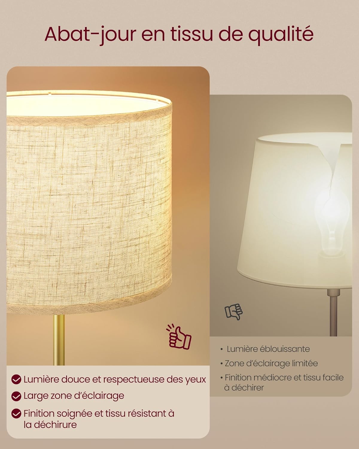 Doordachte stoffen lampenkap: de stoffen kap verspreidt zacht licht, beschermt je ogen en creëert een uitnodigende sfeer in de kamer, ideaal voor moderne interieurs!