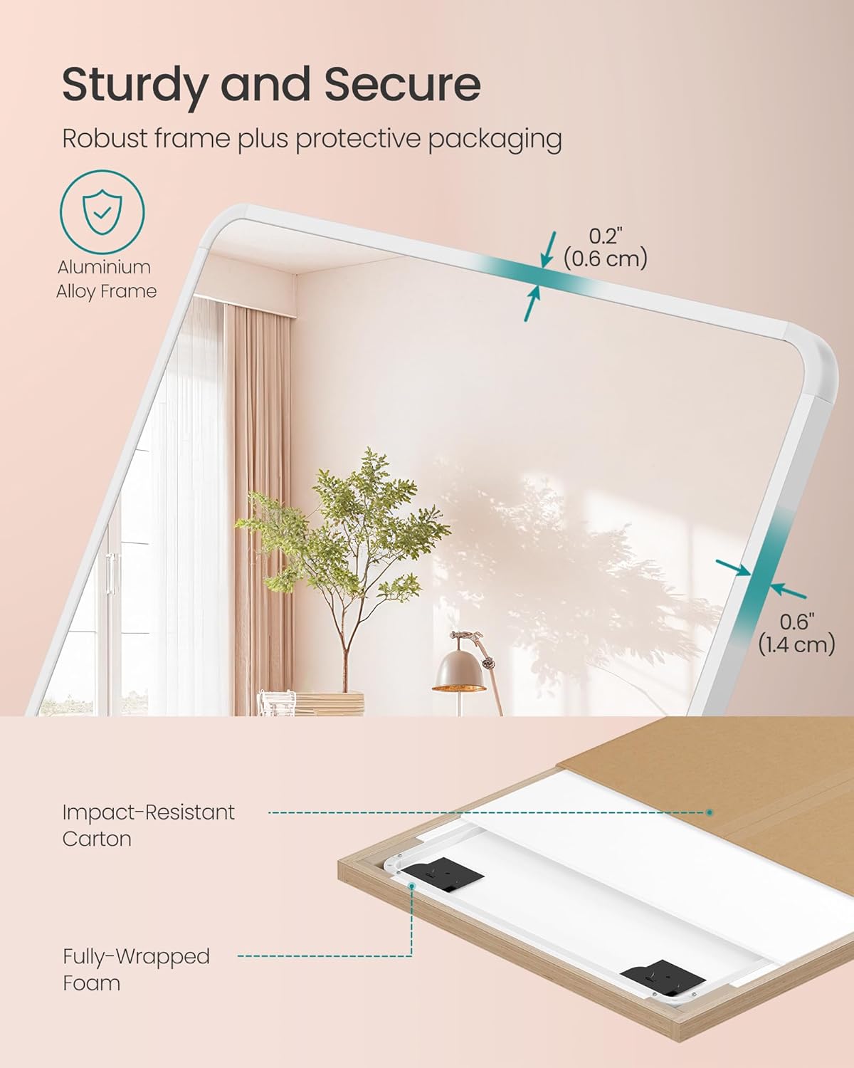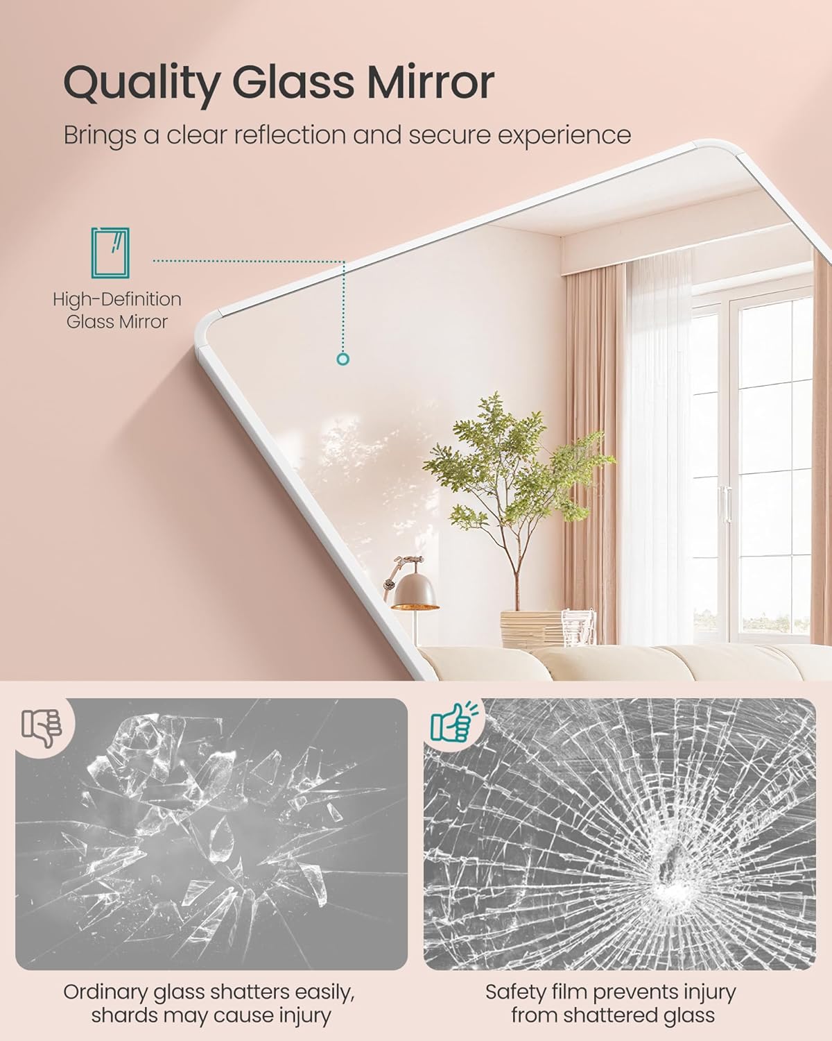 【STERK & VEILIG】 Gemaakt van hoogwaardig gehard glas met een veiligheidsfolie, is deze vloerspiegel onbreekbaar en garandeert hij je veiligheid – zelfs in het zeldzame geval van breuk.