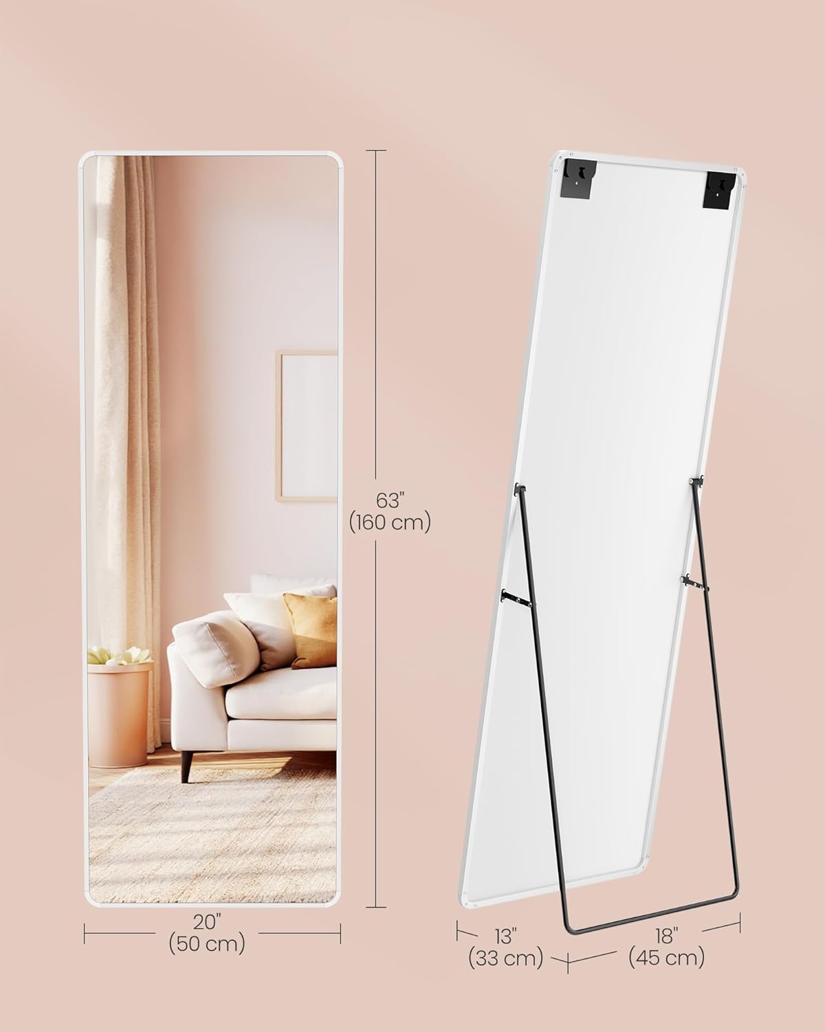 【ALLES IN BEELD, FLEXIBEL IN GEBRUIK】 Onze passpiegel meet 160 x 50 cm en biedt een volledig overzicht van je outfit. Of je hem nu vrijstaand gebruikt of aan de muur bevestigt, je geniet altijd van een perfect spiegelbeeld.