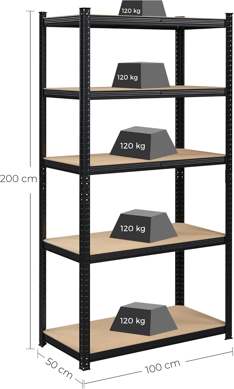 Wat je krijgt: Een 5-laags, stevig rek met omgezoomde randen, kunststof doppen en een kantelbeveiliging voor extra veiligheid. Gun uzelf dit opbergrek en zorg dat uw garage, werkplaats of kelder weer op orde is.