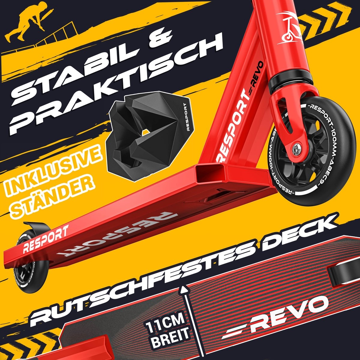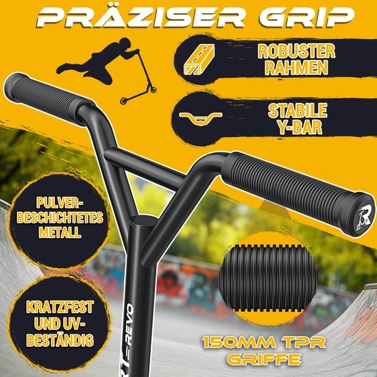 RE:SPORT® Stuntstep REVO voor kinderen en volwassenen met standaard | Professionele stuntstep met 100 mm PU-wielen en Y-stuur | Stuntstep met ABEC 9 lagers | Kickstep voor tricks