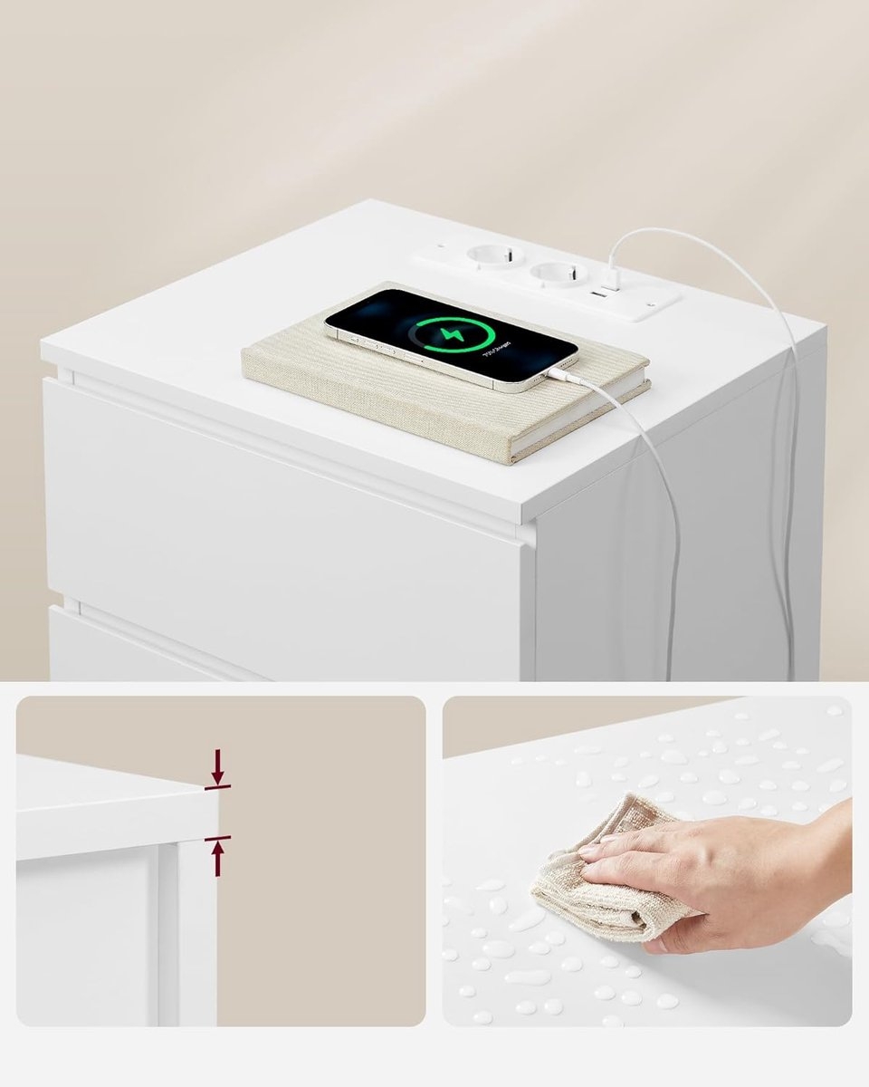 Duurzaam: dit nachtkastje met stekkerdoos is gemaakt van hoogwaardig spaanplaat van 15 mm dik. Het is robuust en stabiel genoeg om tot 62 kg te dragen en zal jarenlang trouw aan uw zijde staan.