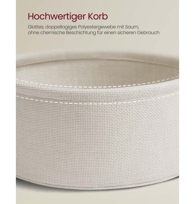 – Afmetingen stoffen mand: 71,5 cm diameter en 15 cm hoog.