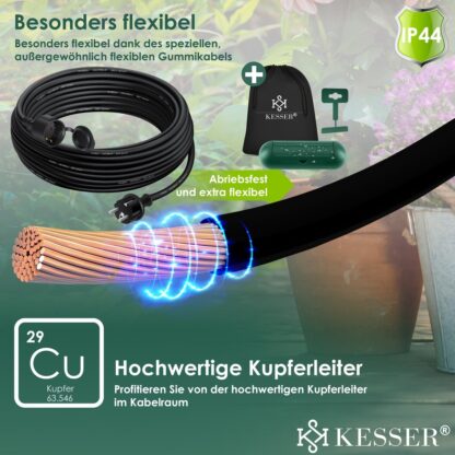 VERSATIEL: Bereik elke hoek in je tuin met de grasmaaier, verleng de aansluiting van je zwembadpomp of plaats de straalkachel perfect op koude dagen. Met onze verlengkabel van KESSER heb je talloze gebruiksmogelijkheden om je dagelijks leven gemakkelijker te maken. Dankzij de verschillende kabellengtes vind je gegarandeerd de perfecte stroomkabel voor jou!
