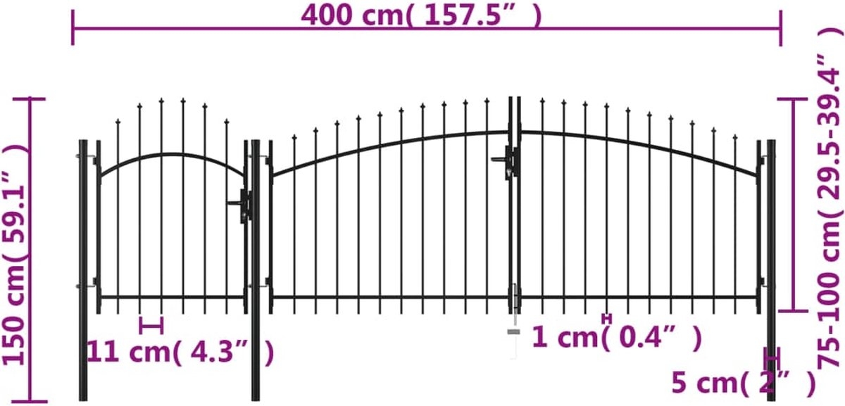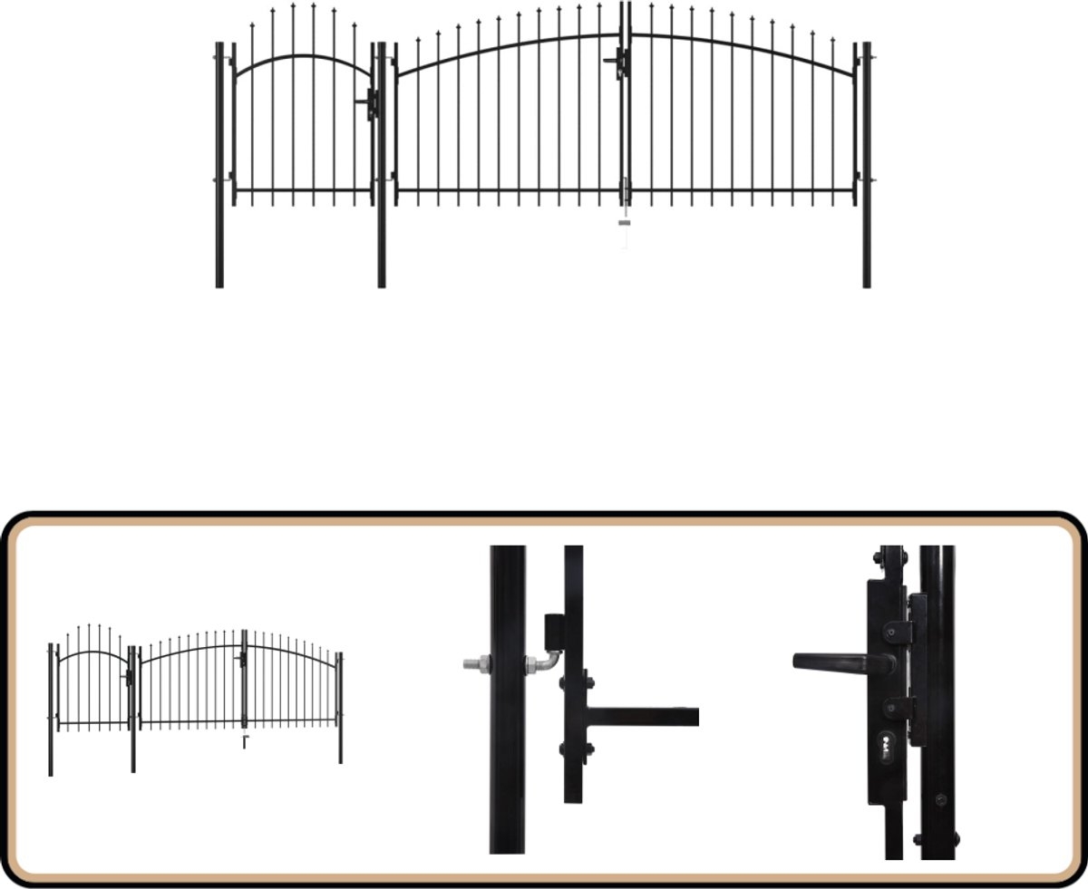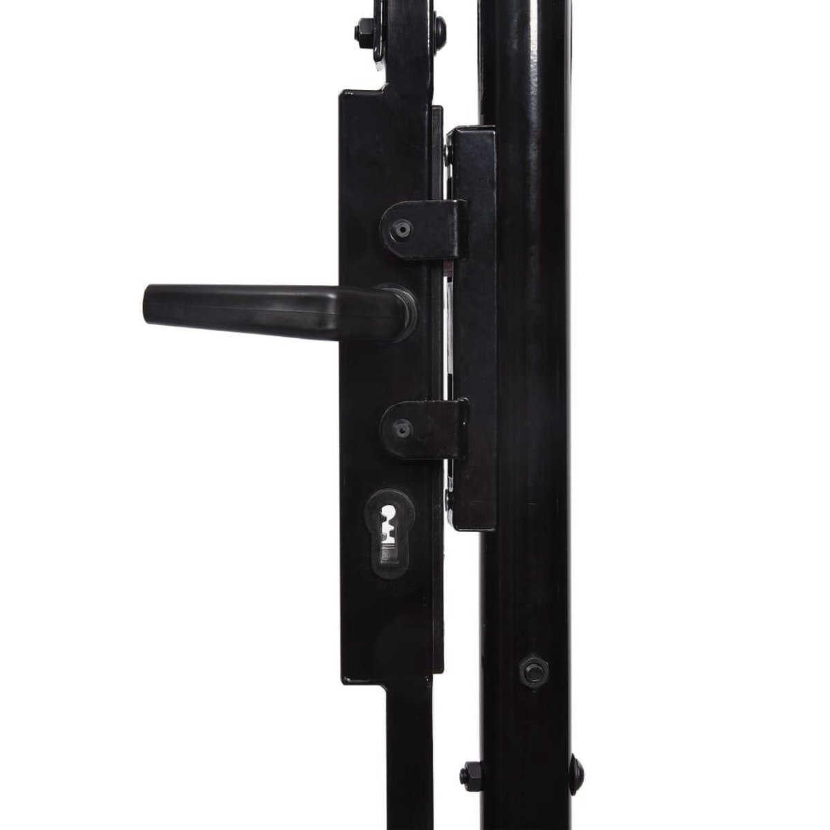 Dankzij het elegante, gebogen ontwerp en de sterke horizontale schoren ter versteviging van het frame, biedt onze tuinpoort een hoge mate van veiligheid en vormt hij een fantastische toegang tot uw terrein. De poort is gemaakt van gepoedercoat staal en is gepoedercoat tegen roest en corrosie. Bovendien is deze poort voorzien van een vergrendelingssysteem en wordt hij geleverd met drie palen en stevige scharnieren voor eenvoudige installatie. Bovendien helpt de meegeleverde valstang om twee helften van de poort op hun plaats te houden voor extra veiligheid. Deze tuinpoort is een uitstekende combinatie van stijl, stevigheid en stabiliteit!