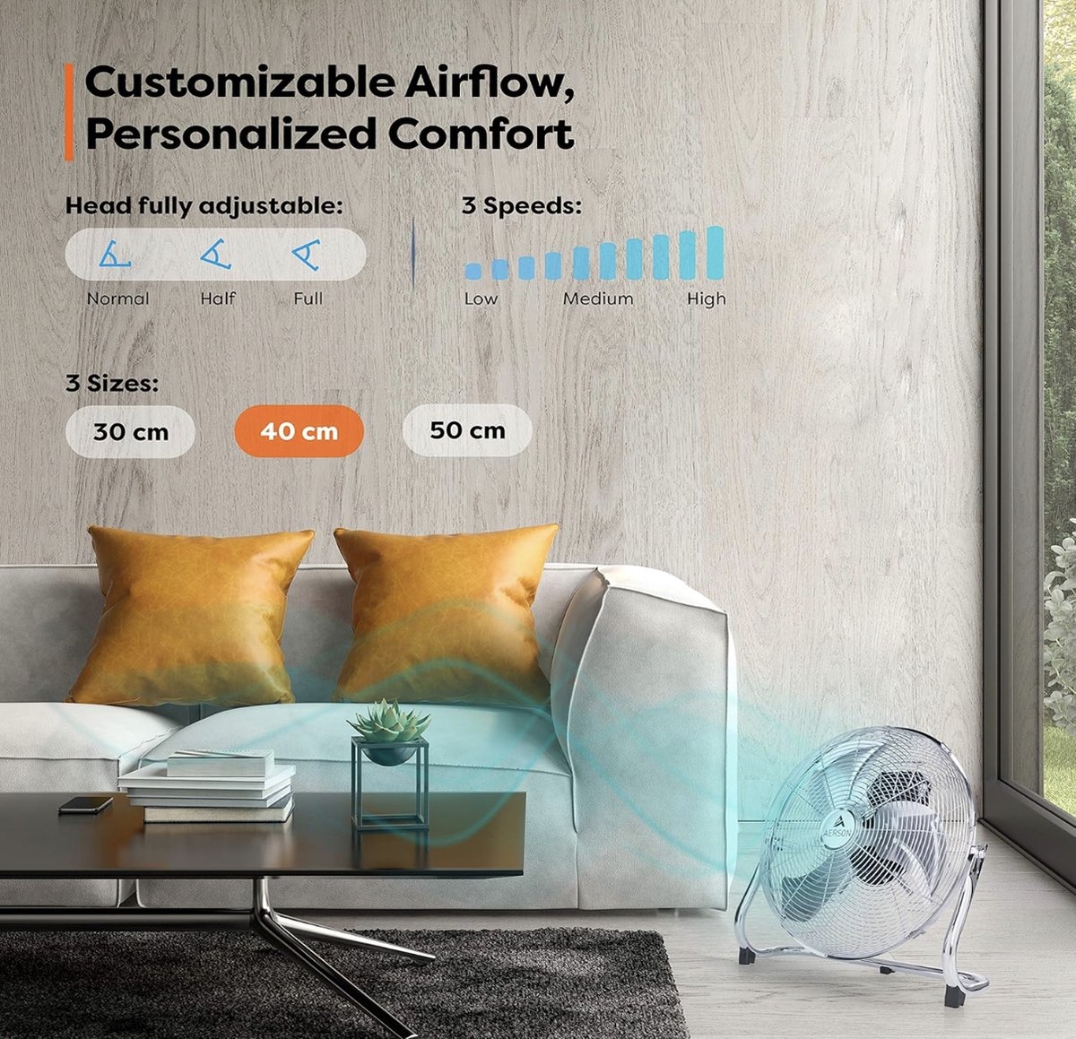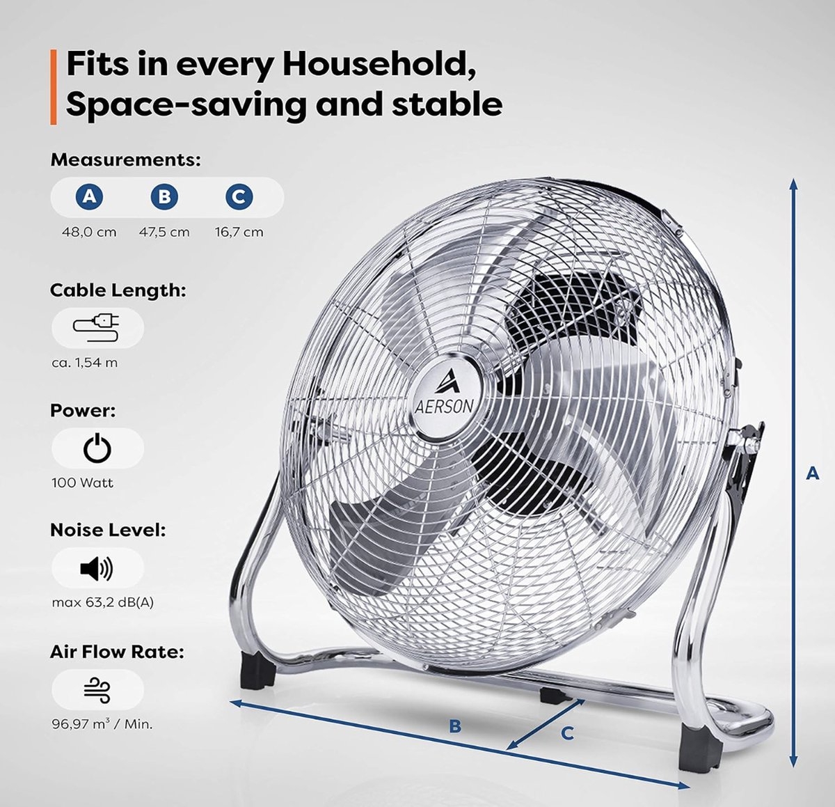 AERSON vloerventilator/waaier 40 cm met 3 snelheden voor tot 5818,2 m³ luchtcirculatie per uur