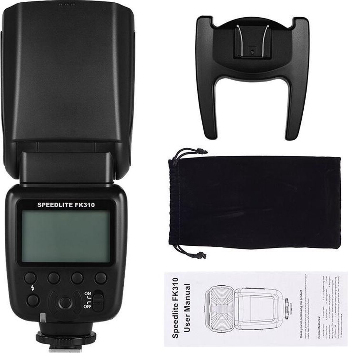 Deze flitser is geschikt voor alle camera’s met een universele hot-shoe zoals de meeste camera’s van Canon, Nikon, Olympus, Pentax en andere merken. Voor het gebruik met een camera van Sony dien je een extra Sony hot-shoe converter te kopen. Voor het gebruik met een Canon 250D, 1500D, 2000D, 3000D en 4000D dien je een exta Canon hot-shoe converter te kopen. Controleer voor aankoop of uw camera een universele hot-shoe heeft.