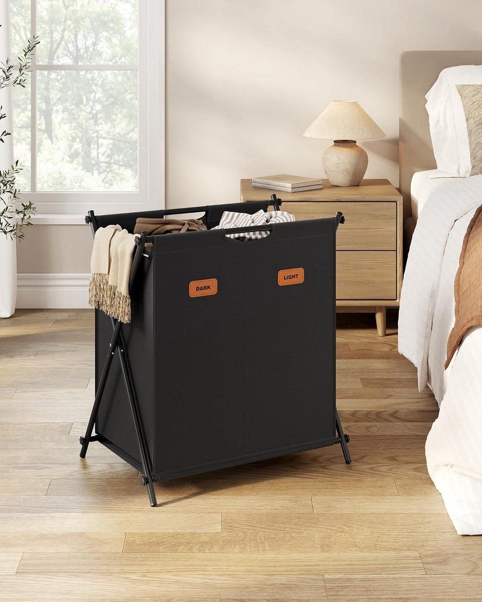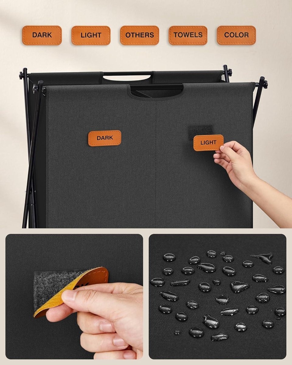 Deze wasmand maakt het sorteren en wassen van je kleding een stuk eenvoudiger en efficiënter. Met de handige labels en het stevige X-frame is deze wasmand een handige en duurzame oplossing voor al je wasbehoeften.