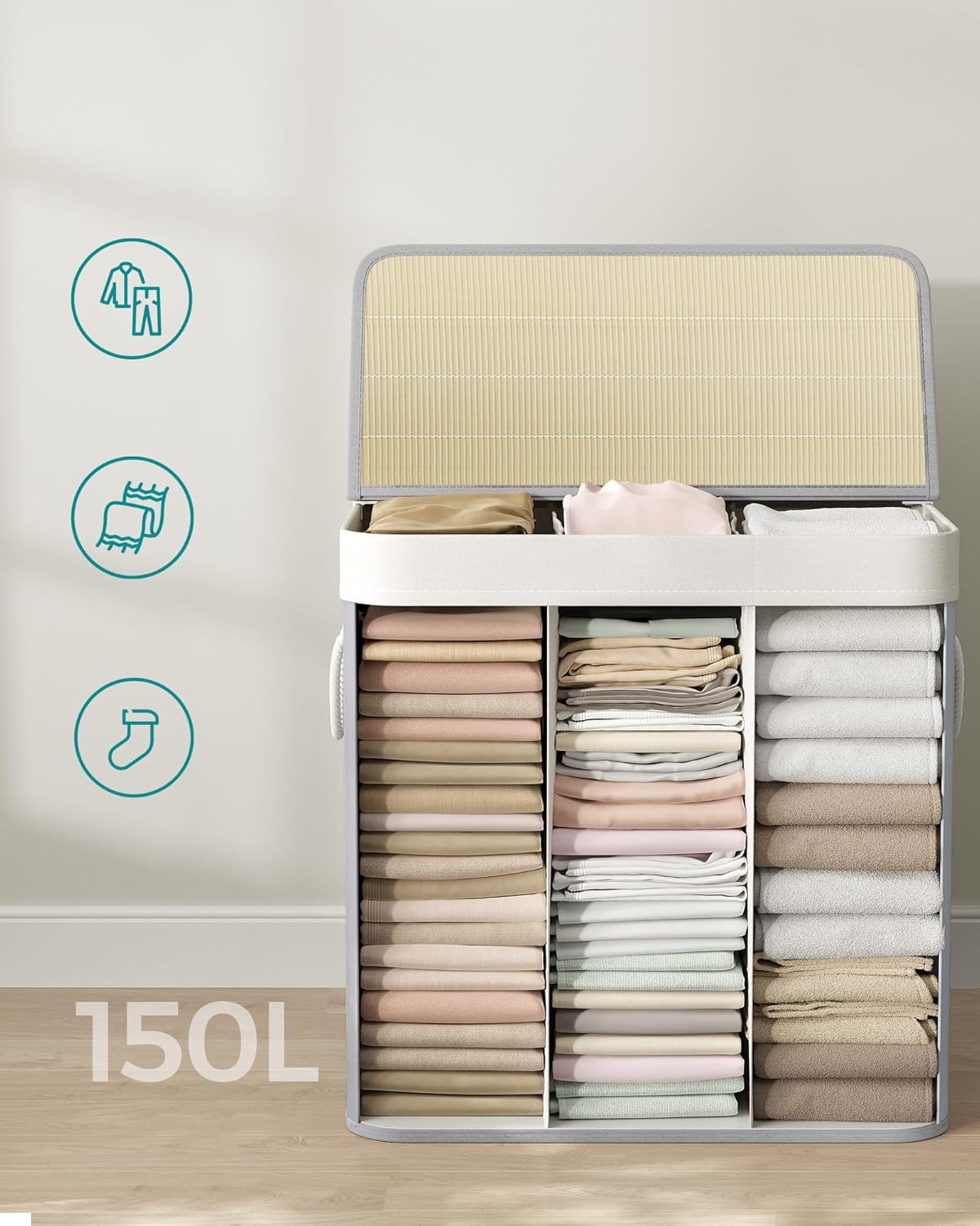 [150 liter – Grote inhoud] De wasmand van 41,5 x 62,5 x 61 cm biedt veel opbergruimte (150 liter) voor de vuile was van een gezin voor een week.