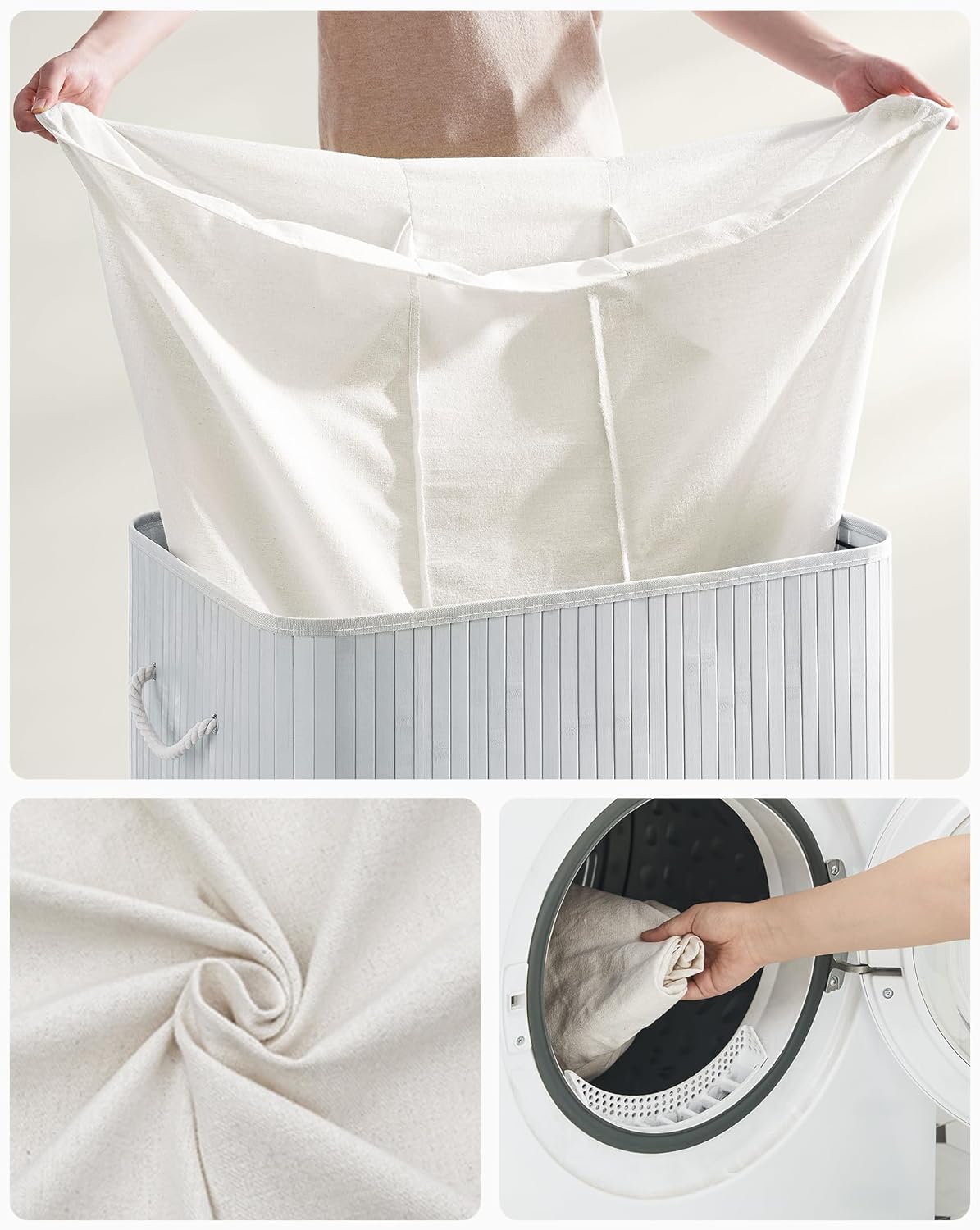 [Uitneembare en machinewasbare waszak] De binnenzak van 160 g/m² polyesterkatoenmix is uitneembaar en machinewasbaar, waardoor u uw wasgoed gemakkelijk naar de wasruimte kunt vervoeren op de wasdag.