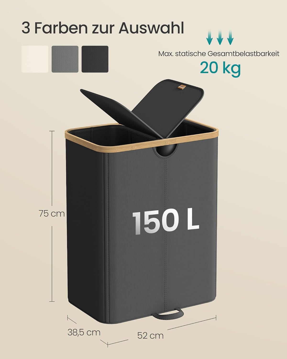 FSC-gecertificeerd: De bamboe rand is gemaakt van FSC-gecertificeerd hout. Afmetingen: 52 x 38,5 x 75 cm (L x B x H)