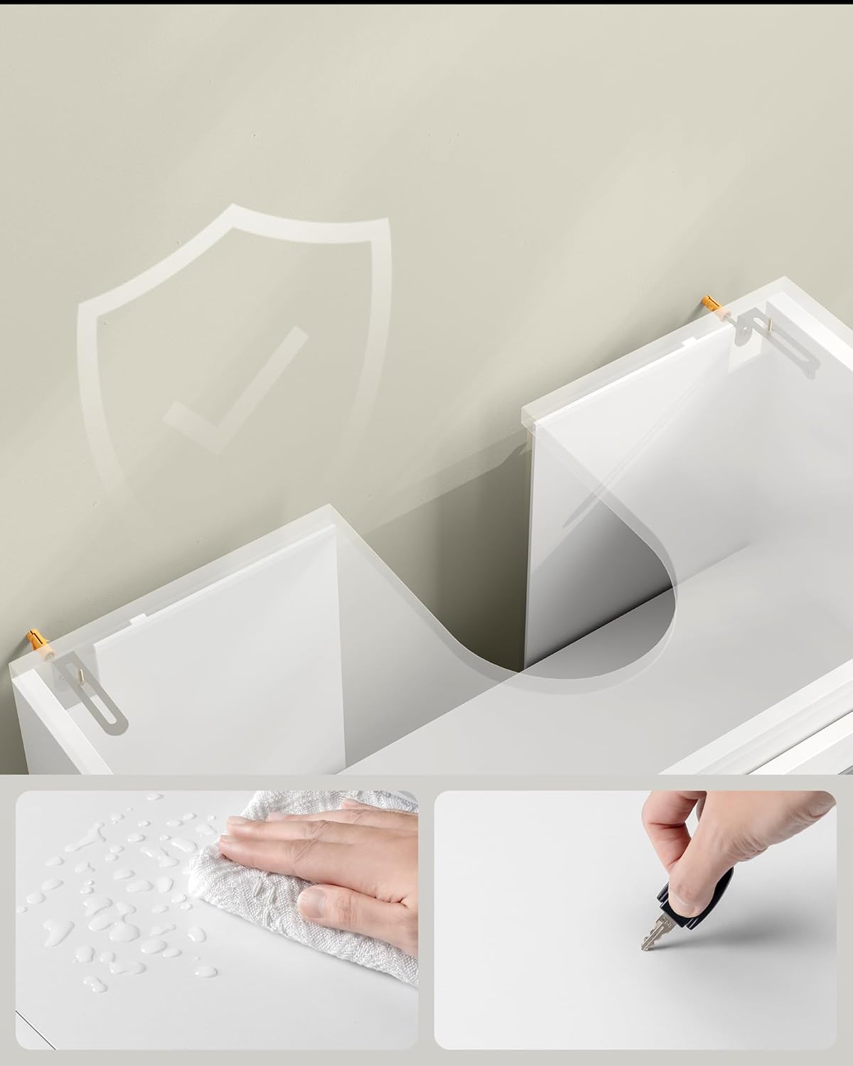 STERK EN ROBUUST Deze badkamerkast, gemaakt van hoogwaardig MDF en spaanplaat, is duurzaam en gaat jarenlang mee. De meegeleverde kantelbeveiliging zorgt voor meer stabiliteit.