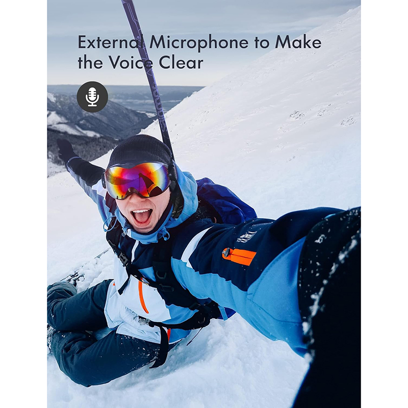 GA100 helm cam wordt geleverd met een externe ruisonderdrukking microfoon om duidelijker geluiden vast te leggen in luidruchtige omgevingen. De meegeleverde multifunctionele bevestigingsaccessoires kunnen voldoen aan de behoeften van verschillende gebruiksscenario’s, zoals fietsen, motoren, paardrijden, snorkelen, duiken, skiën, zonder extra accessoires te kopen.