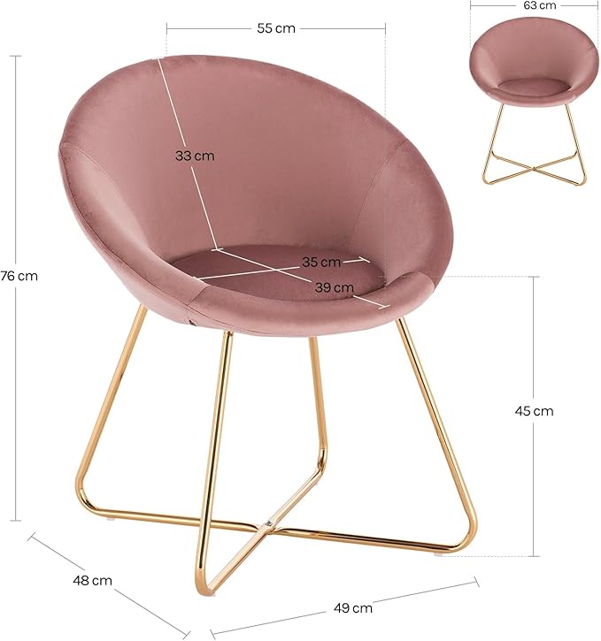 Woltu – loungestoel – fauteuil – cocktailstoel – bijzetstoel- roze met goud