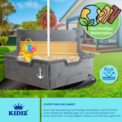 De zandbak is gemaakt van hoogwaardig, weerbestendig en natuurlijk materiaal, waardoor de veiligheid van uw kind gewaarborgd is. Het massieve grenenhout zorgt bovendien voor een hoge veerkracht en stevigheid, zodat er niets in de weg staat om met vriendjes te spelen.